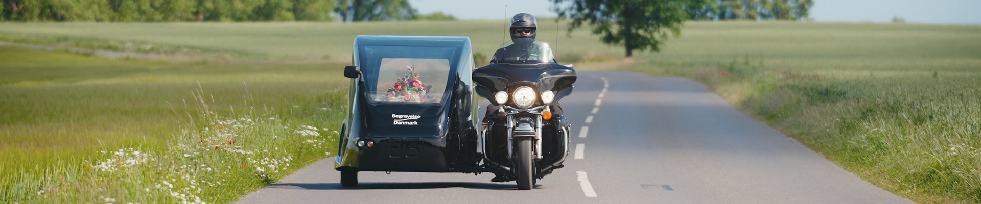 Omtrent 150.000 danskere ejer en motorcykel, og antallet af motorglade danskere vokser. To bedemænd fra Begravelse Danmark, der begge har kørt motorcykel i mange år, vil stå for at tage den afdøde med på en sidste rejse rundt på de danske veje.