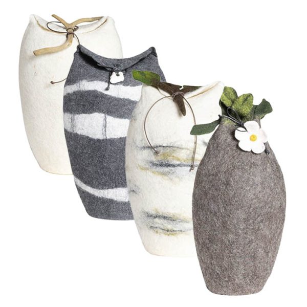 Håndfiltet urne i uld og naturmaterialer. 100 % biologisk nedbrydelig.
